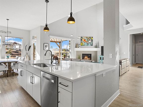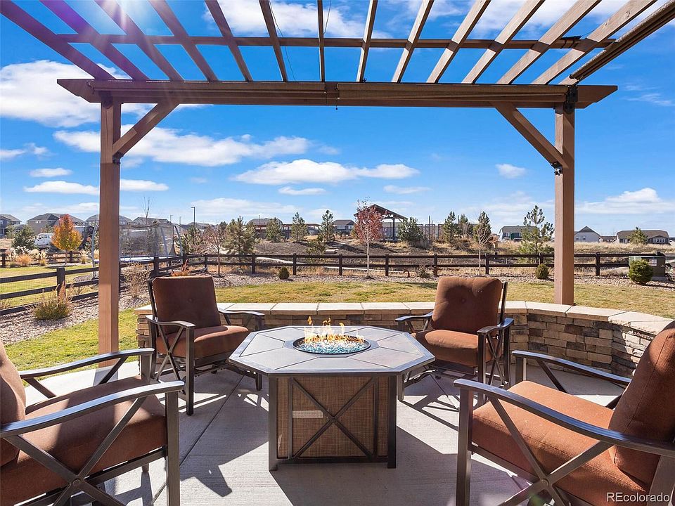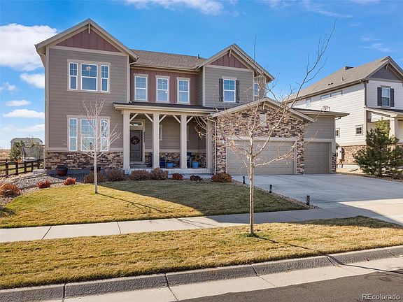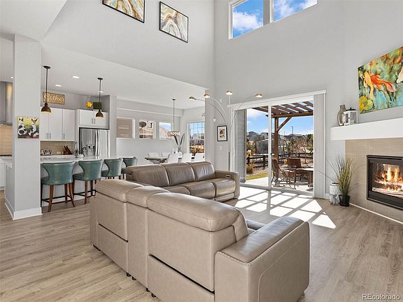 Better than new stunning home with newly finished basement in 2021. This lovely home is situated on an oversized lot adjacent to the neighborhood pool, park and trails with distant mountain views. The property features a highly desirable open floor plan with two story Great Room, 20 foot ceilings and gorgeous picture windows which flood the home with natural light. Exceptional finish details include luxury vinyl plank flooring, quartz countertops, muted paint colors and upgraded lighting and hardware. A fresh white gourmet Kitchen boasts a large center island with stainless steel appliances, subway tile backsplash, extensive quartz countertops and pendant lighting. Two spacious eating areas include a sun drenched Dining Room and a breakfast bar with seating for four. Stainless steel appliances include a newly added Bosch dishwasher, GE Profile oven, microwave and five burner gas cooktop. The Primary Suite is located on the main level and features a huge walk-in closet with easy access to an attached main level Laundry Room. The Primary Bathroom has a stunning oversized shower with modern finish detail throughout and separate vanities. The main floor also has a Study and Mud Room with built in bench and coat hooks. The upper level is perfectly laid out with three spacious bedrooms and a large Bonus Room complete with walk -in closet and mountain views. This space is perfect for an additional bedroom, second office or children's playroom. One upper bedroom is en-suite with a full bathroom and large walk-in closet. Two additional bedrooms are well laid out and share a hall bath. The newly finished basement is the icing on the cake in this lovely home with large rec room/media and gaming space, fitness room, storage and half bath with rough in for tub/shower already in place. The fenced yard showcases gorgeous western sunsets overlooking community open space with an extended patio with newly added stone wall and pergola with sun shades. This property is lovely!