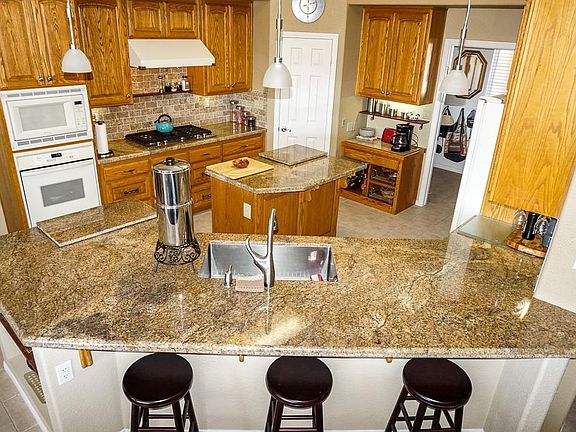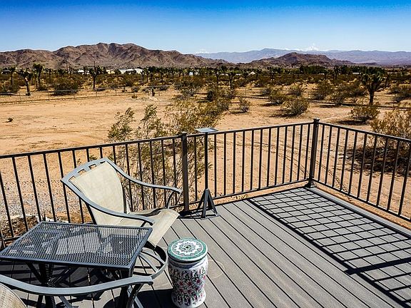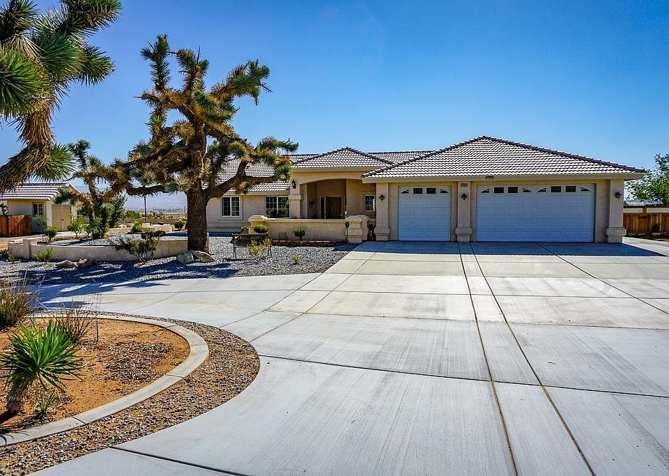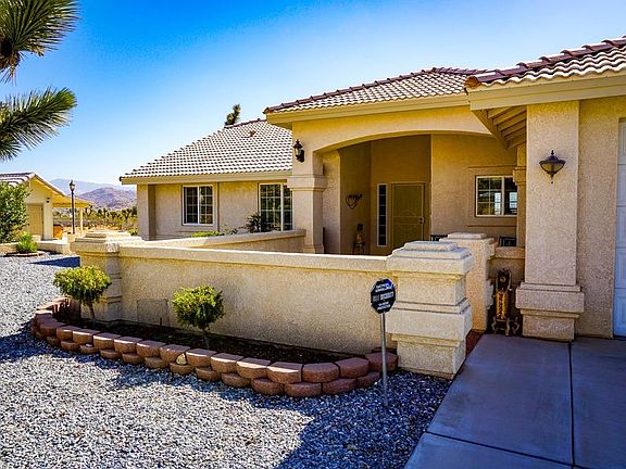 2003 custom built home with 40x40 RV garage/workshop on over 2.25 acres fenced. This exquisite home in the Sycamore Rocks area of Apple Valley has it all. It is extremely energy efficient with highly insulated 2x6 walls and R-40 insulation in the attic. In the kitchen you will find granite counters, a stainless steel 5 burner stove, built in oven/microwave, island with breakfast bar, large pantry and pendant lighting. The great room has incredible views, vaulted ceilings, wood burning stove with stone surround, and custom window coverings. The master bedroom has an on suite bath with dual sinks, walk in closet and a huge shower. The RV garage/work shop measures 40 x 40 with 14 foot ceilings and has a kitchenette plus a bathroom with shower. There are 3 roll up doors and mezzanine deck. The finished walls are insulated and there is an evap cooler to keep it comfortable. It has 125 amp sub panel and RV hookups including power and dump station. Please see pictures for more remarks/details
