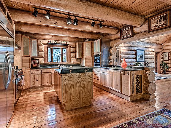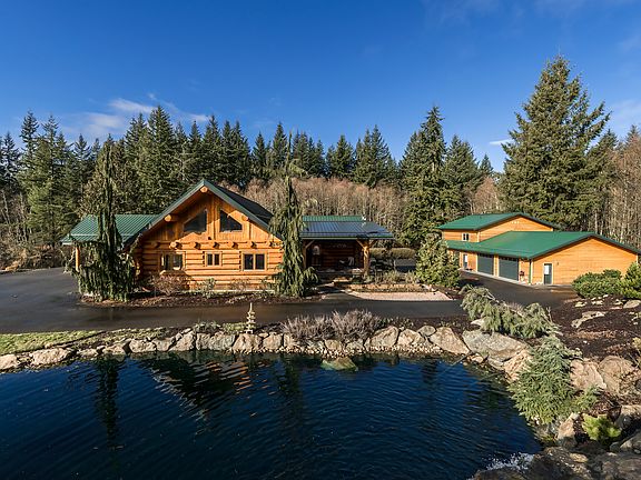 'Superb Log Home' A gated, self-sufficient masterpiece. This indoor/outdoor paradise has over a decade of meticulous hand-planted, carved & crafted luxury. Relax in front of the river rock fireplace or entertain under the covered patio in this 6k+ sf log home. A rushing waterfall, private lake & 3,300sf building equipped w/ an artist studio/shop, 4-car gar & the perfect guest house. Adtl generator powers this entire fortress. Adjacent 3Ac lot w/ separate well & power included. Northwests Best!