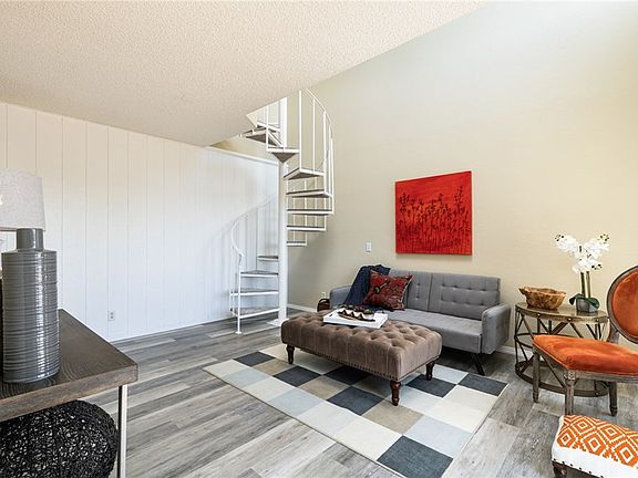 Back on the Market...It is your second chance to get this adorable condo! Nestled in a quiet corner of the Las Palmas tract, this end unit, 1 bedroom studio, 2 bath home in Mission Viejo boasts great views of the treetops, neighborhood hills and is close to the community pool. The 642 square feet home has no one living above or below and lives bigger than it shows. It has an open floor plan and a large, private, front patio with beautiful views. New laminate wood floors are a light washed grey color and when teamed with neutral carpet and fresh designer paint, the look is current and contemporary. There is a sparkling white kitchen with a view of the pool too! Both bathrooms have been painted and shine bright. The master bath has a double vanity and a separate shower. Access your upstairs 1 bedroom studio by an oversized spiral staircase, adding to the contemporary look. Plus, the home has been repiped with Flex piping, so you can rest easy! Need more guest parking? The back gate offers ample space for your friends and family to park close to your home, right up the convenient walkway. This condo comes with lake privileges to Mission Viejo Lake. You'll love all the amenities and activities: Beach Club, Summer Concert, walking trails, fireworks and more! Close by off Alicia are lots of choices for fun local eateries, shopping, services, banking, and all that you need. This updated condo with its model home good looks is waiting for you. Welcome Home!