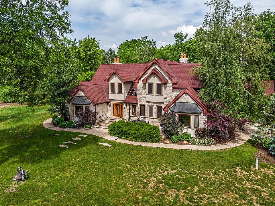 Picturesque views from every room! This Stately home exudes elegance and style all in one. Featuring remarkable hardwood flooring, European Windows and doors, and quality architectural details from gorgeous woodwork, beamed ceilings, a dramatic floor-to-ceiling natural stone fireplace, and a custom floating staircase with intricate details. Recent updates and upgrades include a water Filtration system installed (2021), main bath remodeled (2021), new A/C (2020), water heater (2019), roof with snow melting system (2015), updated kitchen (2016). The entertainer in your family will fall in love. Hosting family and friends has never been so easy; the night will flow effortlessly with this completely open floor plan! The impressive, updated kitchen (2016) features a plethora of custom cabinets with crowned uppers, granite countertops, glass tile backsplash, and high-end stainless-steel appliances featuring a Viking double oven, a Viking convection oven/steamer, Bosch dishwasher, and a KitchenAid refrigerator. The large center island with a Miele cooktop and breakfast seating provides a perfect place to gather for a casual bite to eat. The main level offers the perfect in-law arrangement with a first-floor laundry/mudroom with a brand new LG washer and dryer, and bedroom with a sitting area, a walk-in closet, and a private bath with jetted tub. Adding to the expansive footprint of the main level is a game room accented by a coffered ceiling, gas fireplace, wet bar, and French doors to the office; perfect for those working from home. Once you are ready to call it a night, head upstairs. Here you will find a second main bedroom suite offering a vaulted ceiling, a third gas fireplace, and a large walk-in closet - check out the organization! Feeling stressed? The luxurious spa-like bath offers a dual sink vanity, soaking bath, and separate shower with rain shower head and full body sprayer. Two additional bedrooms with generous closet space and private access to a shared hall bath with a dual sink vanity, jetted tub and separate standing shower, and a large loft area complete the second level. Perfectly situated on acres of land offering you an incredible outdoor space and a private backyard retreat. Envision hosting your next summer cookout out on the brick paver patio or gather around the outdoor fireplace up on the expansive deck. 3 Car attached garage. Schedule your showing today!
