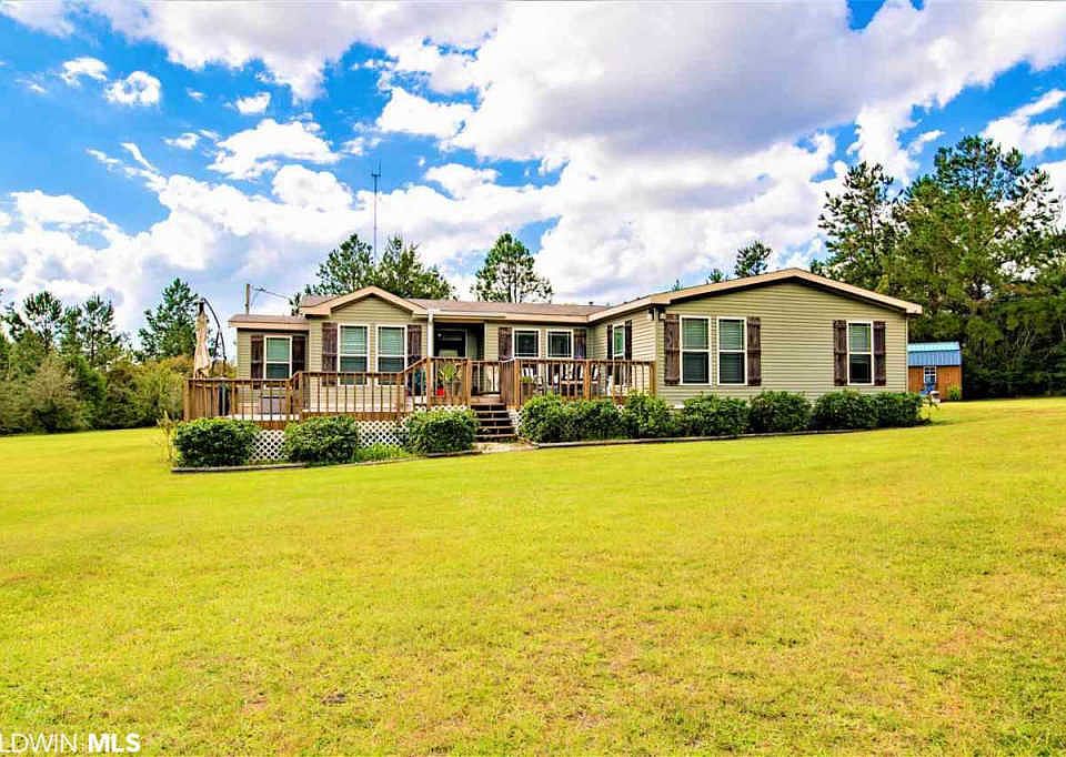 BEAUTIFUL, PEACEFUL, and relaxing are all great for describing this amazing 4 bedroom and 3 bath triple wide home on 9 wooded acres in the Rosinton area, and convenient to Interstate 10 and the Baldwin Beach Express. The home is in move-in condition, very open and spacious. The back door opens to a screened patio and the newly constructed deck that leads to a beautiful pool that will just add to this peaceful country oasis. There are two barns to house your toys and tools or make them your man cave and she shed. Please call today to set up your time to visit and enjoy the quiet break in the country.