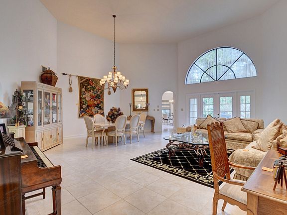 This is the 1 story home you've been waiting for. Modern layout with open family room. Upgraded kitchen with stainless appliances and granite countertops. SMOOTH ceilings - NO POPCORN. Large format ceramic tile floors throughout. Lots of French doors and decorator window treatments. Master bath and 2nd bath have updated showers and vanities have beautiful granite counter tops. ALL WINDOWS have ACCORDIAN SHUTTER HURRICANE PROTECTION. (3 yrs old). Very private backyard with tropical view. Large patio off kitchen area - great for entertaining. Third bedroom is used as den/office. 2 Zone AC 1 recently replaced. Membership optional