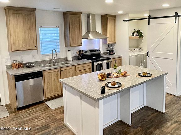 New 2023 home has the perfect ranch appeal and feels like home. It's not often you can find a 4 acre flat lot that includes a well pumping 90gpm!! The home offers modern warm finishes that compliment the custom 12mm laminate wood flooring throughout. Designed with an open concept great room/kitchen and take note that it also includes a matching Frigidaire SS refrigerator and brand new Whirlpool washer and dryer. Additionally this home is offers a formal dining room can be easily converted into flex space. Tons of room outdoors for parking, and hobbies -NO HOA! Great property for horses. Extra features are laundry room/ panty with added shelving and sliding barn style door also to include a nest thermostat, ceiling fans with light fixtures, as well as specialty lighting