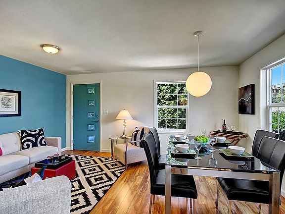 Updated mid century style rambler located in desirable North Beacon Hill. Super charming w designer finishes throughout! Mod style Kitchen has updated appliances & is light & bright w adjacent mud room to exterior. Two bedrooms & two bathrooms including a spacious master suite. Master has ensuite bathroom that is updated & features walk-in shower, slider off master to yard. The back yard itself is your own urban oasis & a gardeners dream. Attached carport w extra large shed, great for storage.