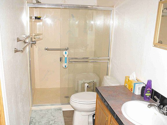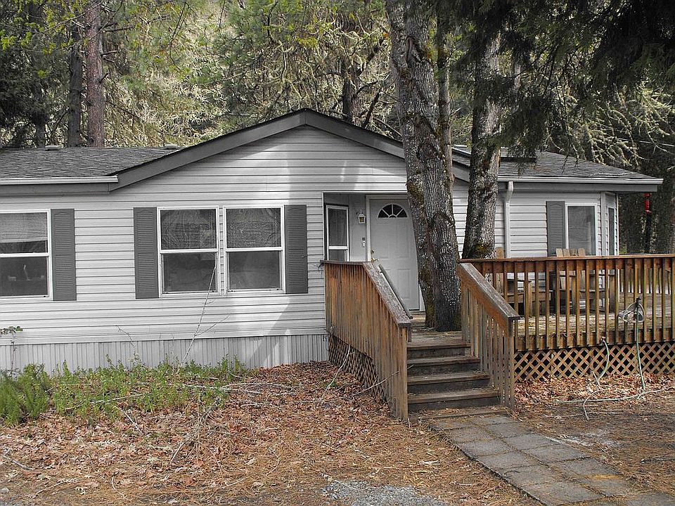 New furnace and heat pump. New floors in kitchen, bathrooms, and utility room. All three exterior doors new. New sinks toilets and cult. marble surrounds. 780 sq ft wood and welding shop 820 sq ft auto shop with hoist. Underground sprinklers fed from creek. RV pad with electric and water hookups. Covered RV storage, three storage houses and heated pump house with filter system. 2 decks one with shade from trees. 2 electric meters, one for home and one for shops. carport attached to garage. Nice and clean yard. Elk, deer, geese, and other wildlife in this wooded setting on Cow Creek with water rights. Nice walk in shower with cult marble handicap grab bar installed into frame by contractor.