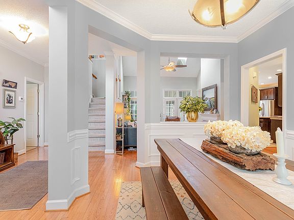 GREAT HOME IN A GREAT LOCATION!!!!Nice lot with low maintenance brick & vinyl siding, gleaming hardwoods, upgraded lighting Beautiful Kitchen(see pics);1st floor Master;4th Bedroom or Bonus; extensive molding;9ft & 2 story ceilings ;finished Garage with cabinets & mud sink; Sunroom with hardwoods; level, landscaped yard & much more. Great home for entertaining.