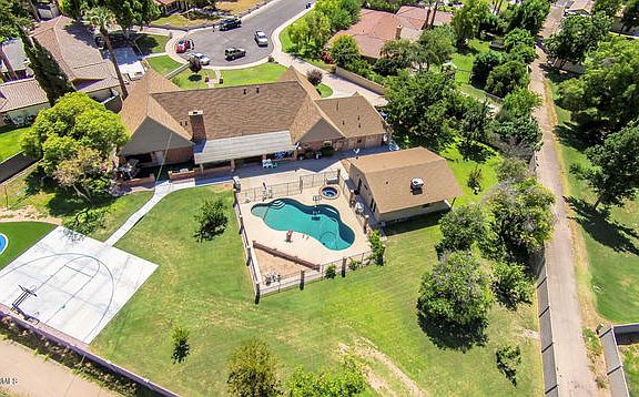 Large multi-generational family home with fun for all ages. Rare basement keeps energy bills low. Top rated elementary school in the neighborhood and walking distance to Mt View. All on an acre cul-de-sac lot with NO HOA, surrounded by custom homes and mature trees. Miller Heights is a sought after neighborhood in the heart of North Mesa. 4600 6 bedroom main house + a separate 900 sq ft guest house. Large bedrooms, walkin closets, exposed brick and solid wooden beams gives this house real character. The sport court, spa, pool and in ground trampoline will provide family fun times for all. **AGENTS - please do not contact unless you have an interested buyer. Yes, we will pay a buyer commission**