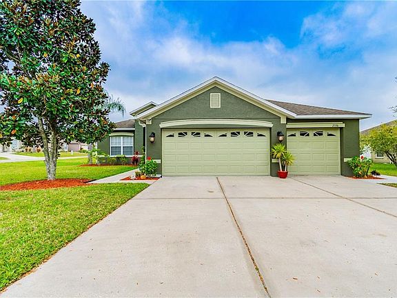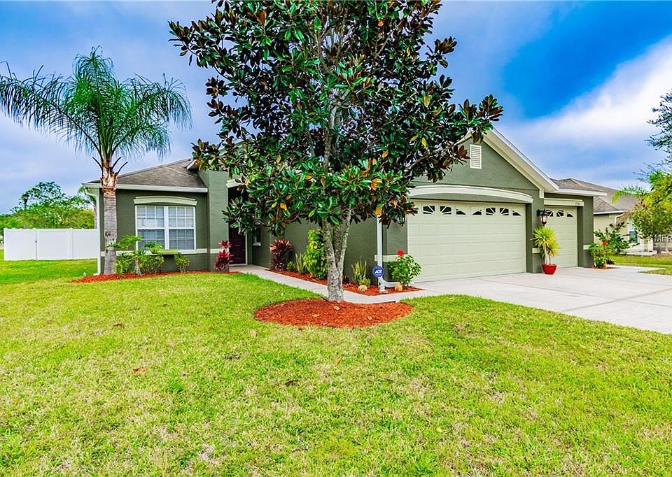PRIDE OF OWNERSHIP shows in this move-in ready 4 bedroom 2 bath 3 car garage home in the desirable community of Harrison Place! A perfect OPEN FLOOR PLAN that allows you to live the day to day family life as well as hosting friends and gatherings. The chef of the house will enjoy cooking in this beautiful kitchen with GRANITE COUNTER TOPS, SS appliances including a newer convection oven plus a LARGE BREAKFAST BAR ISLAND with dual sinks to make cooking and food prep a delight! The dine-in kitchen area frees up the bonus room for use as an office, playroom or additional sitting room. Master bedroom has ensuite with double sinks, stand-alone shower, garden tub, large walk-in closet and sliding doors to let in all the natural sunlight! Located off the spacious living room is a screened lanai accented with BEAUTIFUL CERAMIC TILE - perfect for entertaining and giving the home a light and airy flow. And talk about a FABULOUS LOT! The nearly ¼ acre property has newer white vinyl privacy fencing, EXQUISITE landscaped curb appeal boasting a gorgeous magnolia tree to welcome you home each day and for those with a green thumb, the garden boxes in the back yard are equipped with irrigation to help even the most novice grow their own herbs, vegetables or spring blooms! USDA 100% ELIGIBLE PROPERTY FINANCING AVAILABLE! All conveniently located between Tampa and Orlando, great local shopping & restaurants and MAJOR Florida attractions so close! Priced to sell quickly so call today for a private showing!