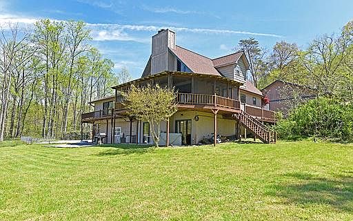 Spacious 4 BR, 5 Bath home w/160 of level lake frontage in secluded cove. Great lake and mtn views. Two master suites, two kitchens. Huge detatched 2-car garage, add l parking for RV, boat, extra cars. New appliances, roof, water heater, A/Cs. Walk-in closets, cherry cabinets, granite countertops. Multi-level porches & hot tub overlook lake. TVA Dock permit. Move-in ready. Some furnishings can convey.