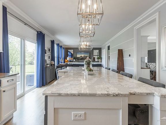 Gorgeous home with upgrades throughout! Must see!! Oversized kitchen island with beautiful Cambria quartz countertops, white cabinets and built-ins in both the living room and dining room! Newly refinished hardwood floors throughout the first floor. Recently remodeled mud room. Master bedroom with custom detailing, closet organizers and a remodeled master bath with bluetooth speakers. Upgraded lighting throughout the home. Mostly finished basement with high ceilings. Recent upgrades include: garage door opener with app, humidifier, ceiling fans, whole house attic fan, ejector pit, radon mitigation system. Large refinished deck, mature landscaping. Approximately 2672 sf of living space. This one is absolutely beautiful and will not last long!