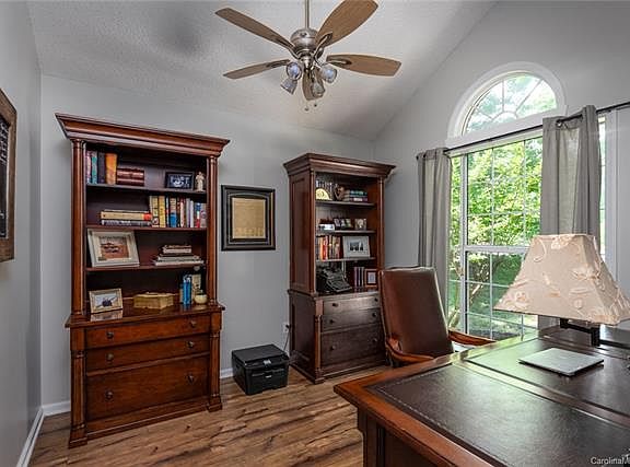This charming home is conveniently located, just minutes from shopping and i485. You will feel a connection as soon as you walk through the adorable front door. Every inch of this home squeals southern charm, farmhouse chic! The main floor features a large office, quant dining room, huge den with soaring ceilings, an eat-in kitchen, and a fabulous sunroom with cathedral ceilings. A large master on the main level has all that you could want, a large en suite bathroom and walk-in closet. Upstairs you will find two bedrooms and an updated full bathroom. Everything inside this home is quaint and move-in ready!