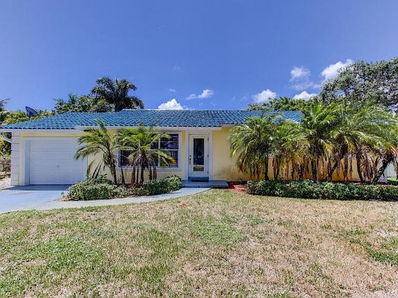 NO HOA! Prime location, CBS construction 3 bed, 2 bath home with fully fenced backyard and inground pool, just under 1/4 acre. Tenant occupied for 1 year until 2016, July 1. LOTS of potential in this home. Oversized 1 car garage for extra storage. Remodeled kitchen w/ granite counters, stainless steel appliances. New paint, ceiling fans and plantation shutters throughout. Fish cleaning station in backyard and room for boat storage on sideyard. Prime location with Multi-Million Dollar homes down the street and small accessway to Intracoastal for kayak or watching boat parade. Courtesy of Tauber Real Estate Services.