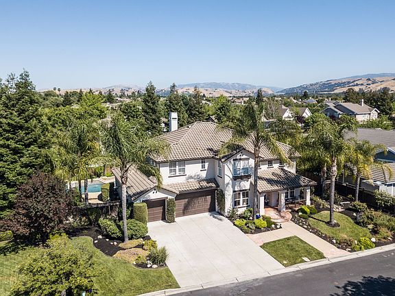 Coveted "Oaks" neighborhood in South Livermore. Santa Barbara style home in prime court location! 5 bed, 3 1/2 bath w/downstairs LARGE junior master w/sitting area, perfect for au pair, guest suite or multi generational family. Upstairs an expansive master retreat w/hardwood flooring, beautifully remodeled master en-suite, 2 large walk-in closets w/built-in's. 2 sets of stairs, both lead to the upstairs which has a study area & 3 additional bedrooms. 2 bedrooms are connected w/the popular Jack & Jill bath concept & walk-in closets.Downstairs office w/built in shelving, cabinets & filing drawers. Living room w/vaulted ceiling opens to well appointed dining room w/a coffered ceiling & double crown moulding. Kitchen w/2 dishwashers, pro-style 6 burner gas range top & hood w/food warming lights & shelf. Stunning custom pool, spa, grotto, waterfall & laminar jets! Too much to list! 3 miles to Historic Downtown Livermore restaurants & boutiques. Minutes to wineries & the 580/680 commute.