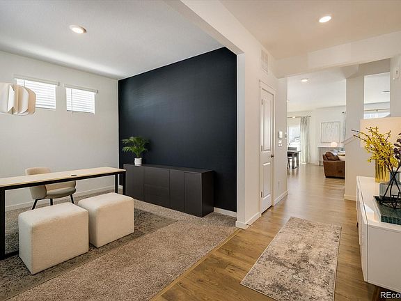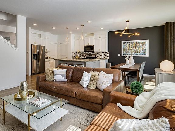Nestled in Crystal Valley Ranch, this absolutely gorgeous better than a new build home located on a cul-de-sac is ready for you to call it home. As you walk into this stunning two-story home, you'll be wowed by the custom details and luxury feel throughout the home. From the hardware, custom paint colors, and light fixtures to the custom kitchen island and custom-to-ceiling cabinet upgrades. The home boasts of ample room from the main level office, the guest bedroom, and an open kitchen-living-dining area flow for perfect entertaining. The backyard extends the entertaining space with an expansive concrete patio, perfect for entertaining, grilling, sitting in the hot tub (negotiable), or enjoying the sunsets. As you head upstairs you are welcomed by the loft bonus media space or use it as a playroom, additional living space, or second office, the options are endless. The primary bedroom is spacious with tastefully updated hardware & lighting, custom-painted cabinets, a glass shower door to match the hardware, and a spacious closet with a closet organizer system. Built in 2021 and the interior and exterior have been professionally painted. This home has a 3-car garage with 8' garage doors and an unfinished basement for all your storage and expansion needs. Enjoy the outdoors by enjoying the fully fenced and landscaped yard with irrigation in the front and back yard, or hopping on trails that will take you to downtown Castle Rock for shopping and restaurants, or head over to the rec center located nearby for pool time or a workout and if you're into mountain biking or disc golf Rhyolite Park is close by too. DTC is close by and easy commute to Colorado Springs or Denver.