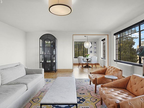 One of the most spectacular views in Portland. A wall of windows from multiple rooms overlooking the Rose City and our snow capped mountain range. This Iconic building brings old world charm while this corner unit is updated with todays modern comforts. Custom kitchen & bathrooms with marble and tile detail. Original parquet floors. Washer/dryer in the unit. A bedroom with a private entrance. Perfect for a home office. Enjoy newly refinished windows being paid for by the Seller. HOA includes; Gas, heat, hot water, trash, water, and sewer! Only utility bill is electric and runs less than $75 a month. Step out your door right into Forest Park, Zupans or stroll through the Alphabet District. Includes a storage unit and secured single car garage!