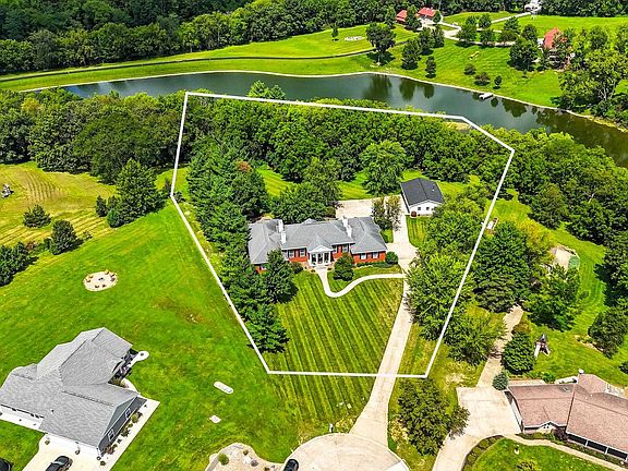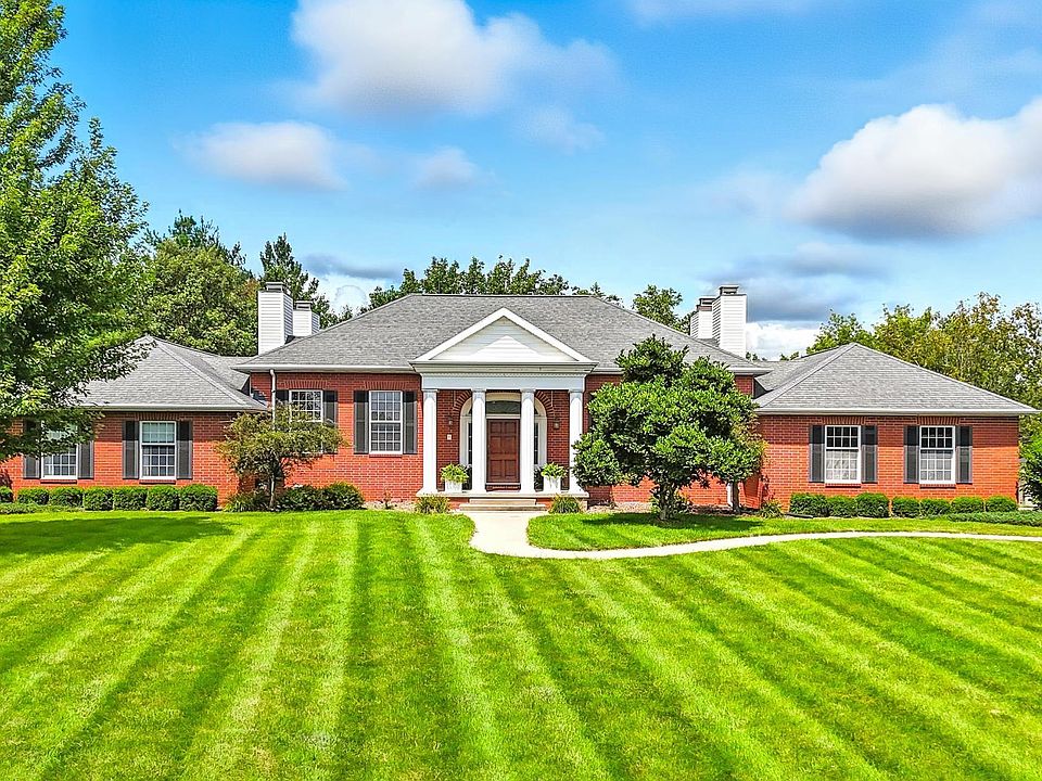 Executive 3,850+ square foot Brick ranch sitting on 2.59 m/l acres in well established cul-de-sac on the edge of town. Enjoy the good life in this main floor living home with lots of updates and high end upgrades throughout. Main floor offers open concept kitchen, formal dining room and living room with gas fireplace all with solid wood floors. Kitchen boasts granite countertops, large eat at island, stainless steel appliances, reverse osmosis water treatment system and lots of cabinetry. Enjoy your formal dining room with wood fireplace and French door access to your rear patio overlooking a private stocked pond and private backyard with professional landscaping. Exquisite primary bedroom with walkout access to patio, backyard and hot tub and large full ensuite including walk in tile shower with dual shower heads, Kohler shower system including rain shower and body massagers, jacuzzi tub with TV, 2 walk in closets and two vanities with plenty of marble countertop space. Three additional bedrooms with walk in closets, 2 full baths, large laundry room with craft area/storage/den, mud room with custom cabinetry, large office with wood fireplace and additional family room with gas fireplace. Lower level provides non-conforming 5th bedroom, 3/4 bath and storage galore. Attached garage with storage and enjoy the 40x28 detached HEATED and COOLED garage with plenty of work space for all your hobbies. Let's make your dreams a reality in this one-of-a-kind custom home!