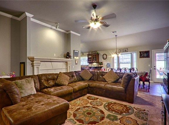 Open & Spacious Carlisle Floor Plan. Kitchen Features Generous Cabinet Space., Closet Pantry, Granite Counter Tops & Stainless Steel Appliances. Master Features a Tray Ceiling, separate tub and shower & double walk in closets. Turtlewood is a picturesque community just minutes from shopping, dining, I-40 and Tinker AFB. Energy efficient home with tornado safety features.