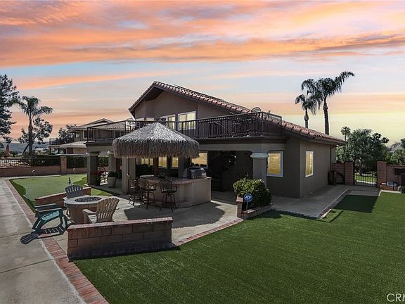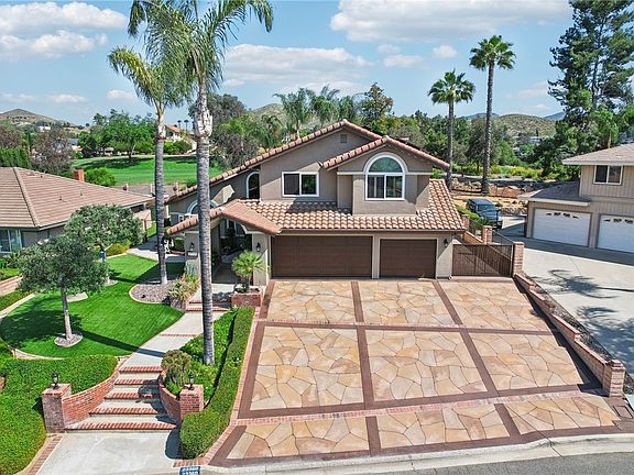 Welcome to 23360 Blue Bird Dr, situated on the 1st hole of the Canyon Lake Golf Course. This pristine residence boasts a 3-car garage with epoxy floors and storage cabinets, gated RV/boat parking, meticulously landscaping finished with artificial turf and 22 paid-off solar panels. Step inside to find the formal living and dining room with elegant plantation shutters adorning the new windows throughout. The remodeled kitchen features cherry cabinets, quartz countertops, a tile backsplash, and stainless steel appliances. The family room is a cozy retreat with a brick fireplace with pellet stove insert, crown moulding and built-in cabinets. The large master bedroom includes a bonus retreat area, and its en-suite bathroom offers a dual vanity sink, deep soaking tub, and separate shower. Step out onto the massive deck off the master bedroom to take in sweeping views of the golf course. The backyard is an entertainer’s paradise, with ample shade provided by the deck and fans. Enjoy outdoor dining at the kitchen palapa, complete with a built-in BBQ grill and fridge. Gather around the fire pit or perfect your short game on the private putting green. For golf enthusiasts, drive your cart straight from your backyard onto the course. Furnishing can be negotiated if wanted. Canyon Lake is a 24-hour guard gated community with a private 525-acre lake with 15 miles of scenic lakeshore, boat access, fishing, kayaking, paddle boarding wakeboarding and waterskiing, 18-hole SCGA rated golf course, lakefront pool and clubhouse, amphitheater with concerts, variety of clubs, planned activities for children, families and singles. Lakeside RV Park, equestrian center, hiking, tennis, basketball & pickleball courts, baseball fields, 4 beaches, 18 parks, a bicycle pump track and senior center. Close to schools, hospitals, freeways, restaurants, shopping and so much more!