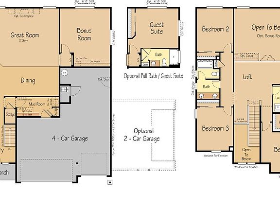 Come home to the Livingston, an estate-sized home that comes equipped with all the space you need to live life exactly the way you envision. With 3,650 square feet of living space and from four to seven bedrooms, this home design has the flexibility to grow with you, providing your family with a timeless home full of modern conveniences.The Livingston features a traditional two-story floor plan that offers an exceptional living experience, high-performance features, and modern comforts. Rich in detail and character, stacked stone and siding exteriors make an impressive first impression, with four appealing architectural styles to choose from, including Craftsman, farmhouse, and modern.Feel right at home as you enter through a charming covered front porch with transom windows.The downstairs includes many features that allow you to live in complete comfort and harmony. A dedicated entry welcomes you to this classic and elegant design, and a den off the hallway offers an inviting space to relax or a private home office or study room. Larger families may select an optional bedroom with full bath instead. The end of the hall opens to a spacious, two-story great room, and its volume ceilings create an expansive space with lots of natural light. An inviting open-concept layout distinguishes each room, while clear sight lines encourage gathering and connection throughout the kitchen, great room, and dining room.