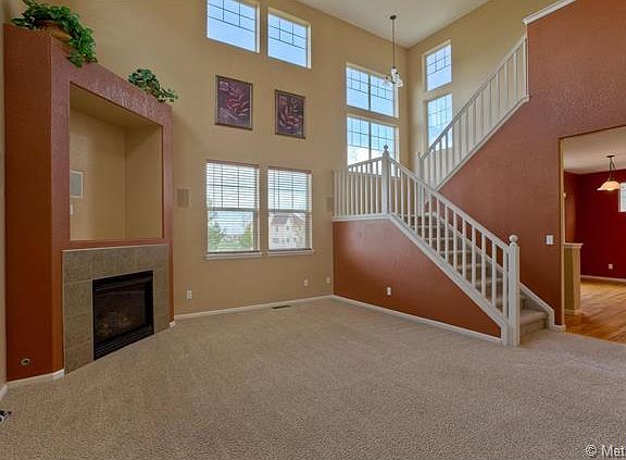 Fabulous Sorrel Ranch Home on a quiet Cul-de-Sac in Cherry Creek School District with greenbelt behind home. Gourmet Kitchen, open floor plan with 20' ceilings in main living area. Study on main level can be turned into a fourth bedroom. Surround sound throughout Kitchen, Living Room, and Master Bedroom. 3 Bedrooms on upper level with Large Master Suite, walk-in closet and 5-piece bath. Fenced backyard with stamped concrete, Great home for Entertaining . Saddle Rock and Heritage Eagle Bend Golf courses nearby, short walk to Community Pool, Close to Southlands Mall. Updated and ready to move in. Be the first to see this one.