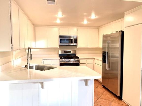 Welcome to 23361 Via Linda, Unit B. Available after 9/1/22. Mission Viejo's Delightful 3 bedroom, 2.5 bath Ridgemont home boasts an updated kitchen featuring quartz counters and stainless steel appliances. Have quick meals at the kitchen counter or in the dining room. Living room features include Fireplace, High vaulted ceilings, and clerestory windows. Tile flooring throughout the main level. Carpet on staircase and second floor. No one above or below. All bedrooms located upstairs, double sinks and large tub in primary bathroom. Laundry hookups in the two car attached garage. Newer appliances installed last year include AC unit, microwave and gas range. Private association pool and spa. All units in the complex were previously repiped within last 5 years, recently fumigated this year. Enjoy Mission Viejo living with holiday & music events, nearby dining, shopping, parks and schools. Lake Mission Viejo Association (LMVA) amenities offers fishing, boat rentals, Yacht Club, beach, summer concerts, movies and more. LMVA is a private facility, membership is optional for the tenant. Mission Viejo is centrally located with John Wayne (SNA) airport just 13 miles away. Popular Irvine Spectrum Center is only 6 miles away. Minutes from I-5 and 4 miles to 241 Toll Road. Mission Viejo ranked #7 in the Safewise Top 10 Safest Cities in the US in 2022.
