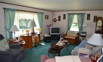 Large family room in basement with gas heater and woodstove. Spa room under porch plus 1 car garage. 1/3 of basement is storage, 2/3 is finished. Water treatment in basement. 1 Acre.