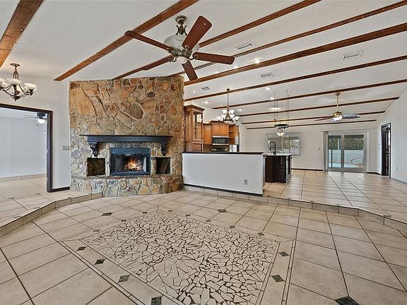 Discover the perfect balance of elegance, warmth, and functionality in this beautifully maintained Tuscan-style 4-bedroom plus den, 2-bath pool home located in the highly sought-after Sec 15 of Port Charlotte—featuring public water and sewer, no HOA, and not in a flood zone.This impressive residence offers approximately 2,420 square feet of living space on a spacious one-third acre lot, combining architectural charm with modern comfort. From the moment you step inside, you’ll be welcomed by an inviting open floor plan with soaring cathedral ceilings and a dramatic sunken family room accented by a stunning stone fireplace—the perfect gathering spot for cozy evenings or entertaining guests. Large windows and sliding glass doors fill the home with natural light, highlighting the home’s tasteful finishes and thoughtful design. At the heart of the home, the gorgeous Tuscan-inspired kitchen blends style and functionality with rich wood cabinetry, a large center island, tile backsplash, pendant lighting, and ample counter space for meal preparation or casual dining. The open-concept layout connects the kitchen to both the dining area and great room, creating a wonderful sense of flow ideal for family living or entertaining on a grand scale. The spacious primary suite is a serene retreat tucked away for privacy, featuring a large ensuite bathroom with a soaking tub/shower combo beautifully tiled from tub to ceiling, dual sinks, and a generous closet space. The additional bedrooms are well-sized, and the den provides flexibility as a home office, media room, or guest space—perfect for today’s lifestyle needs. Step outside and experience true Florida living! The screened-in pool and covered lanai offer the ideal setting for morning coffee, afternoon swims, or evening cocktails under the stars. The adjoining BBQ patio with bar makes outdoor entertaining effortless. Surrounded by lush tropical landscaping and a fully fenced backyard, this private retreat is as beautiful as it is functional. A large shed/workshop adds convenience and storage, while ample parking easily accommodates RVs, boats, or additional vehicles. Practical updates include energy-efficient LED lighting throughout, modern fixtures, and well-maintained systems for comfort and peace of mind. This home is perfectly positioned for convenience—just minutes from shopping, dining, schools, medical facilities, golf courses, and the pristine Gulf beaches of Southwest Florida. Enjoy easy access to both US-41 and I-75, allowing for quick commutes north toward Sarasota or south to Fort Myers. 23366 Lehigh Avenue is more than a home—it’s a lifestyle. With its blend of spacious design, thoughtful details, and resort-style outdoor living, this property truly embodies the best of Florida Gulf Coast lifestyle. Move-in ready and beautifully cared for, this is where elegance meets everyday comfort