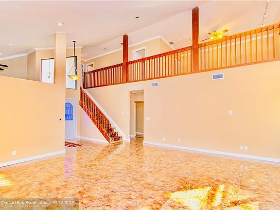 This home is an Absolute Dream! Beautiful Two Storey home with Master on the main floor, two additional bedrooms + Loft upstairs and 2.5 bath. Features lovely updated kitchen and Bathrooms. Freshly painted inside and outside. Open, bright and spacious floor plan. No popcorn ceiling and No carpet. Fabulous Screened pool patio Facing the Lake. One of the Largest Lots in Boca Trace. Great Central location, A+ schools and low HOA.