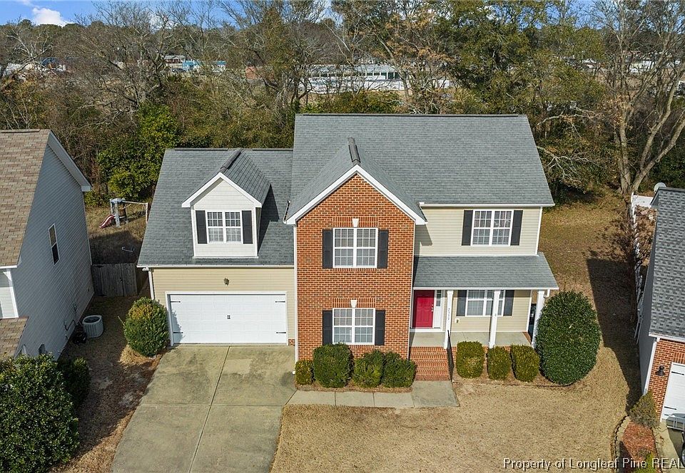 Solid home in well established neighborhood just minutes from I-95, HWY 295 and short drive to Ft. Liberty. Hardwood flooring throughout the first floor. Tastefully, freshly painted. Solid surface countertops, stainless steel appliances and beautiful cabinets in kitchen. Formal dining with chair rails, wainscoting and trey ceiling. Half bath also downstairs. Upstairs is the primary bedroom with ceiling fan, trey ceiling and bath ensuite featuring jetted tub, separate walk in shower and double vanities. Two secondary bedrooms, a full bath & an oversized bonus room with separate office area are also located upstairs. Backyard has a deck. Nice covered front porch.