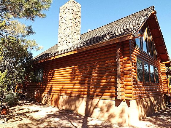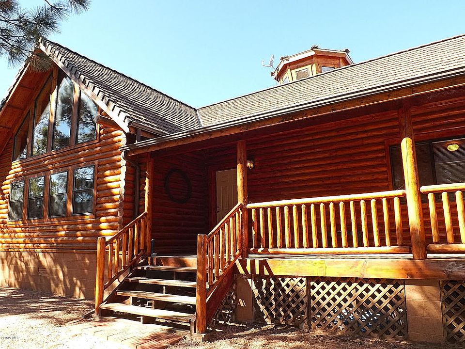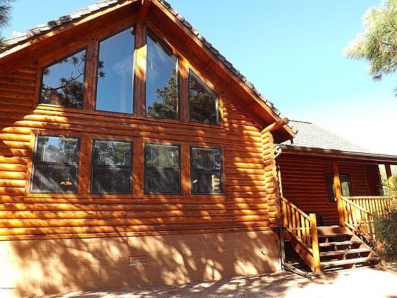 Stunning 3 BR/2 BA, 2089 SqFt full log cabin in the Mogollon Air Park. This home is smartly situated on a heavily treed 1.09 acre homesite with direct access to the taxi-way and located on a private cul-de-sac. This full log cabin features a great room design with a wall of windows, a stone faced wood burning fireplace, knotty pine T&G ceilings, tiled and carpeted flooring, a loft with access to a cupola with 360 degree panoramic views, a laundry/mudroom and an easy workaround kitchen with island and lots of cabinets. The exterior boasts two large decks, tiled roofing, gutters and downspouts, and a 40 x 50 pre-wired cement pad for a hangar or large garage.