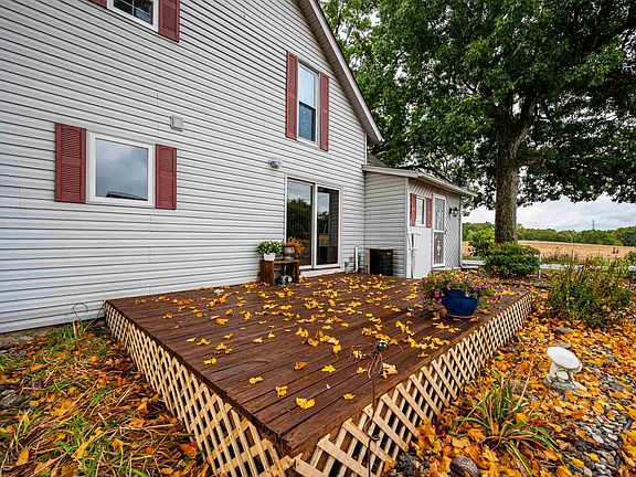 Beautiful country sunsets are free with this 3 bedroom, 2 full bath home sitting on a half acre. Over 1800 of finished square feet in this 2 story "farm style" home along with a detached 2 car garage. Enjoy entertaining on the large oversized deck and fire pit area. You will love both of the living rooms on the main floor and the upper level for that extra space! Main floor laundry with utility sink, formal dining room, den and large foyer. This home has been meticulously maintained and has already been inspected by an independent inspection company! Home Details: New roof, hardwood flooring, newer stainless steel appliances, washer and dryer included, updated kitchen countertops, jetted jacuzzi tub, lots of built in shelves, surround sound included and much more!