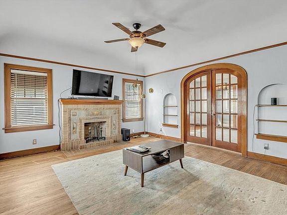 Don't miss the chance to make this remarkable 1930 Tudor-style home in the beautiful Crestwood Addition your new home! Just minutes from the Plaza District, the Paseo, and downtown, this cozy, single-family home invites you in with natural light and amazing original features like the hand-painted stone fireplace, arched front door with a round window, and some original hardwood floors. The spacious bedrooms include a master bedroom with access to a charming, covered patio/porch area that would be ideal for enjoying morning coffee and watching the neighborhood spring to life. There's plenty of space for play in the backyard and includes a one-car detached garage and an additional outbuilding for your lawn mower and other tools. BONUS! A small addition has been added to the back of the house to make a separate laundry room :) One of the seller's favorite things about the property is the backyard, in which the mature greenery made it feel like an escape from the bustle of the city. The seller has already purchased a new gas range and cabinets for the kitchen, which will remain on the property for the buyers (the currently installed stove is in working condition). Refrigerator also stays. NEW ROOF AND HVAC IN 2017.