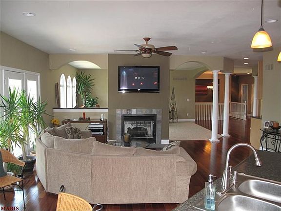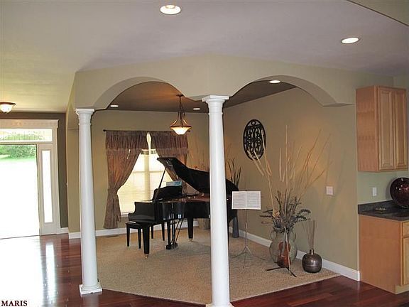 Exquisite custom ranch, approx. 2700 sq. ft. on 1.91 ac. Loaded*** Huge covered front porch. 9' ceil. Main level, lots of arch's & columns. Entry foyer, hall, kit/brk & hearth rm have hardwood floors.** For. Din Rm.** Gr. Rm. has see thru gas frpl., arched windows & high vaulted ceilings. The kit/brk has custom cab.,center island, stainless appl. & atrium door Hearth rm. wired for surround sound. Lux. mstr. suite with bay, built-in computer hutch, + lux. bath with lg. 2 head shower, dbl vanities, w-in cl. and its own separate laundry. 2nd & 3rd bedrooms separated by jack & jill bath. Open strcse. to 10' pour LL with rough-ins for 2 1/2 baths + wet bar. 2 dbl. door w/outs. Electric is up-grd. with structured media panel with voice data & high speed intranet. 3 car gar. (2 c side is 23x18) (1 c side is 28x16) & 8' tall drs. + extra cabinets in garage. Intercom & Sec. system. Dual HVAC. Prewire for solar sys & generator + rough-i