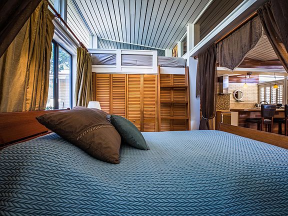 Experience the opportunity to live in this unique 2BR, 2BA, fully furnished oceanview unit, overlooking the 1200 square foot oceanfront pool. This unit is part of a mid-century modern 1.7 acre oceanfront Estate built in 1961 featuring clerestory windows, inverted California redwood ceilings, Italian Travertine, Texas white brick with teak and glass throughout and it light and airy. The pool and oceafront lawn light up at night and are truly magical! This unit has an open floor plan with new kitchen with bar, separate bedroom/office with a spa bath with teak soaking tub and danish teak furniture. It sleeps up to 6. All rentals include utilities, cable, internet, and access to the pool and beach. 90-day minimum rental period. Longer stays are welcome.