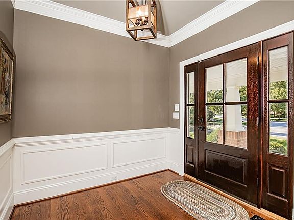 Major price reduction! Perfect location on quiet culdesac, backs to woods in sought after Oak Park neighborhood w/amazing custom homes & spectacular architectural details. A Napier Signature home with so many custom details! Spacious rooms, coffered ceilings, Plantation shutters, 1st floor owners suite, plus perfect "work at home" separate office ( or media, rec room! ) & finished 3rd level that any teen or AuPair would love! Inviting front porch leads to gracious foyer & dining or living room. Custom granite kitchen w/island & coffered ceilings, tile backsplash, stainless appliance, warmer & wine cooler! Large eating area has Craftsman wainscotting. Soaring stone fireplace and bookcases highlight the family room. 1st floor owners suite has incredible walkin with custom shelving & dream bath with corner tub & oversized tile shower. 3 up bedrooms, and finished 3rd level with 2 large rooms fits so many needs. 2nd rear staircase leads to office or rec room tucked away for the perfect work/study/media use. Side entry garages has separate 3rd garage perfect for workshop with storage, exercise room or weekend fun car storage! Rear patio offers peace & quiet overlooking woods in rear!