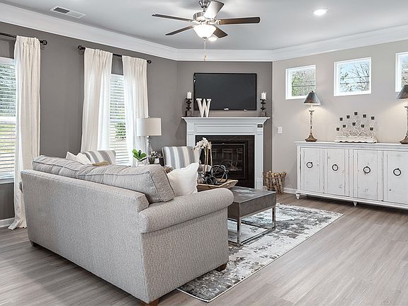 Outdoor lovers prefer the Braselton for its unique rear corner covered patio, directly accessible from a large eat-in kitchen with central island.. The kitchen overlooks the expansive, light filled family room. Enjoy granite counters, white tile backsplash, and beautiful deep Saddle color cabinets in this kitchen. Also throughout the living area in this home is Laminate Plank flooring. On the second floor, an oversized loft separates the private owner's suite from two secondary bedrooms. Off of the loft also conveniently lives the laundry room. The owners suite includes a massive walk in closet and private bath.
