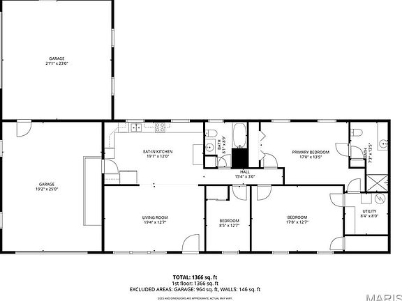 Welcome to this inviting three-bedroom, two-bathroom ranch perfectly situated in an ideal location, close to town while still offering peaceful country views. Enjoy the best of both worlds with convenience and serenity all in one place. This well-designed home features two double-car garages, both attached for easy access and added functionality. Step into the bright and spacious living room, where huge windows fill the space with natural light and create a warm, welcoming atmosphere. The open floor plan flows seamlessly into the eat-in kitchen, offering generous cabinet space and plenty of room for cooking, dining, and gathering. Two of the bedrooms are very large, providing ample space for furniture, relaxation, or a versatile setup to suit your needs. The convenience of main-floor laundry adds to the home’s practical layout and everyday ease. Whether you’re looking for comfort, convenience, or room to grow, this home checks all the boxes. Don’t miss your chance to make it yours!