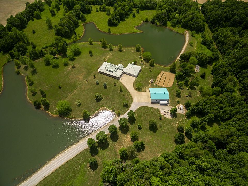 A spectacular property with custom home featuring high-end finishes, wrap-around porches, a large stocked lake, pole shed shop building and tillable acreage.