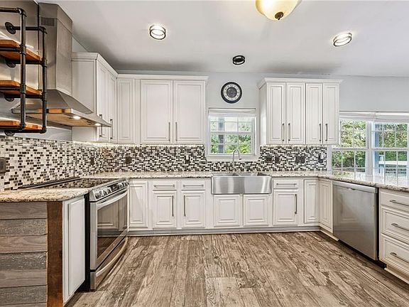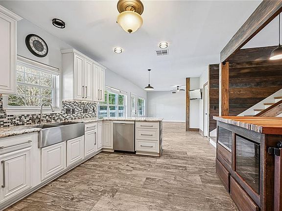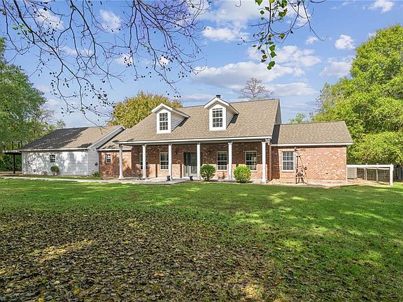 Experience country living on this private 6.51-acre estate, designed for comfort, versatility, and recreation. Enjoy peaceful views from the second-story deck or relax on the spacious covered back porch, ideal for seamless indoor-outdoor living. The grounds showcase a beautifully stocked pond with fishing dock, a fire pit, and a sandy beach area. Ideal for quiet relaxation or outdoor gatherings. The expansive 4,249-square-foot main residence features 5 bedrooms and 4.5 baths, including two primary suites conveniently located on the first floor. Interior highlights include granite countertops, designer ceramic and bamboo flooring, and abundant natural light throughout. A newer 1,272-square-foot guest house extends the property’s living options, offering 2 bedrooms and 2 full baths with granite finishes. Complete with its own private driveway, fenced backyard, storage building, and separate meter, this space is perfectly suited for multi-generational living, guests, or rental income potential. Additional amenities include boat and RV storage, multiple storage sheds, a chicken coop, fenced yard with dog door, and a charming treehouse that adds to the property’s unique appeal. A brand-new roof has just been installed, providing added peace of mind.