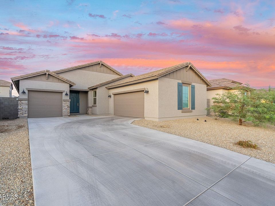 Unbeatable value in this BRAND NEW BUILD by award winning, LandSea Homes complete with finished front and back landscaping plus full appliance package! No neighbors in front, just mountaintop views! 3 tone exterior curb appeal with upgraded stone work, iron lighting, split 3 CAR GARAGE with walk in access to the home from both garages. Admire a massive open and flexible floor plan with oversized island, barstool seating, extended 42'' cabinetry, stainless steel new Samsung appliances, a new Fridgidaire refrigerator and an impressive walk in pantry. Retreat to the homeowner's suite equipped with dual vanity sinks, extra counter space, dual medicine cabinet storage and HUGE walk in closet. LandSea Homes Hualupai floor plan with split style bedrooms, large bedrooms and opportunity to convert the office to a 4TH BEDROOM. Don't forget the covered patio with newly installed turf and desert design backyard. Bentridge's playground, community park and sidewalks throughout makes for a comfortable neighborhood feel. Location, Location, Location. This home is situated in a vibrant, fast-growing community, just minutes from Fry's, Lowes, Walmart, schools, Sundance golf and Sundance Park with fishing lake, dog park, and convenient 5 minute access to the I-10 freeway, you're within quick reach of the best that Buckeye and the greater Phoenix area has to offer! Tour today.