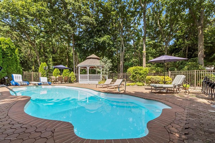 THIS 5 BEDROOM, 4 FULL BATH FABULOUS SHORE COLONIAL LOCATED IN APPLE RIDGE CIRCLE ESTATES HAS AN IN LAW SUITE WITH A SEPERATE ENTRANCE, WASHER, DRYER, KITCHEN, LIVINGROOM, BEDROOM AND DINING ROOM WHICH OPENS UP TO A PAVED PATIO.THE FIRST FLOOR OFFERS A LARGE 28X21 ENTERTAINING LIVING ROOM, BEAUTIFUL NEW KITCHEN WITH SS APPLIANCES, FULL BATHROOM, COZY GREATROOM WITH A WOOD FIREPLACE, A DEN BEDROOM WITH FRENCH DOORS AND A LAUNDRY ROOM.THE SECOND LEVEL HAS 3 BEDROOMS, A FULL BATH, A LARGE MASTER SUITE WITH TWO WALK IN CLOSETS AND A MASTER BATH WITH JACUZZI AND LARGE SHOWER.THE PRIVATE BACKYARD HAS A FENCED IN HEATED POOL, GAZEBO AND KOI POND.CHERRY HARD WOOD FLOORS, SECUIRTY SYSTEM, ELECTRIC FENCE IN OUT OF HOME AND GORGEOUS CROWN MOLDING.RIDE BIKE TO TOWN OF MANASQUAN AND BEACH ON THE BIKE TRAIL.