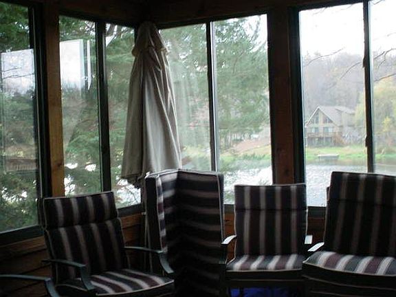 Wow! 3 Bedrooom, 2 full bath, Almost New Lakefront! This gorgeous cedar sided chalet features a 3-season room, super sized loft, beautiful stone fireplace, forced hot air LP heat, central A/C, dock, major furnishings, and large unfinished basement for future expansion. Reasonably priced at $399,000, Beds Description: 2+BED 2nd, Beds Description: 1Bed1st, Baths: 1 Bath Level 1, Baths: 1 Bath Level 2, Eating Area: Dining Area, Sewer: WS Comm Central