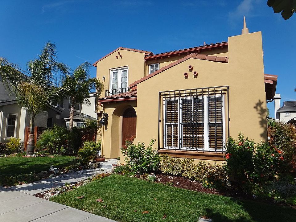 Offering an exquisitely maintained Bayport home! An elegant Mediterranean style 5 bedroom 3 bath (can be converted to 5 bdrm) home in a very desirable location. A welcoming decorative interior featuring many upgrades, Hickory hardwood flrs, custom window shutters, French doors, & numerous built-ins. 9' high ceilings are throughout main living areas. The main level features a spacious formal living rm that could also be ideal as office or a 5th Bdrm. An inviting family room with a gas fireplace is open to the kitchen. The master suite includes a large, spa-like bathroom & a walk-in closet. Upstairs loft has partial city views. Take a break from life's everyday stressors in the serene courtyard & backyd which features custom flower bed w/ lots of lush greenery, fountain, travertine tiles, lemon & lime trees & beautiful flowers. Conveniently located nearby to Alameda Point, the shopping/dining at Alameda Landing & offers easy access to BART, SF Ferry & Webster Tube.