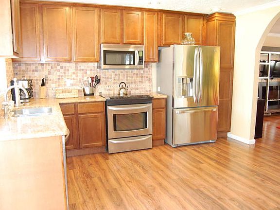 Nestled at the top of a quiet cul-de-sac, this charming home is just what you are looking for! Inside, you will be welcomed by large living area that flows through to the wide-open kitchen, featuring granite slab counters, new stainless steel appliances, adjoining spacious dining area and a great view out to the lush back yard and pool. Three lovely bedrooms, 2 baths nicely updated. Rich wood laminate flooring throughout, new neutral paint scheme and wood shutters in the bedrooms. Step outside to the long covered patio and lush yard adorned with fruit trees and rose bushes. HUGE sparkling pool secured with fencing. You will FALL IN LOVE with this perfect home that has it all!
