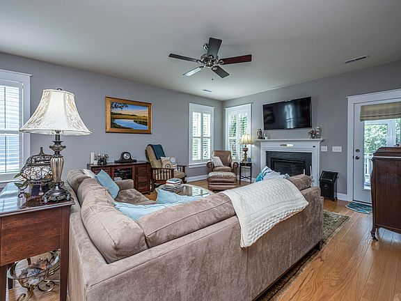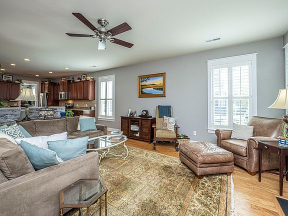 Fantastic location for this Charleston Single style home in Carolina Bay with so many Extras! Elevated construction with drive under, extra parking pad (2 cars wide driveway). Total parking availability: 4 cars outside and 2 cars in garage. Outside features include; an over sized lot,, a screened back porch over looking the fully fenced landscaped backyard with a permanent wooded greenspace, plus a downstairs grilling area. Open floor plan. The Main floor features: 9' ceilings, hard wood floors and plantation shutters. Plus a large master suite including a spacious walk-in closet, dual vanities, a large soaking tub, and a step-in shower. The dining room has wainscoting and crown molding. The gorgeous kitchen has lots cabinetry, stainless steel appliances, and granite countertops. The open and airy living room has a cozy gas logs fireplace and access to the screened porch. The second level has a massive bonus room with access to the upper porch. Three spacious bedrooms, a Jack n' Jill bath, and an additional full bathroom. Here's a list of extra features. New AC 2020 July (2 year warranty transfers to new homeowner) 2019 December exterior painted, 2 coats brushed paint 5 homeowner installed Palm trees Stove/dishwasher/oven/refrigerator/washer dryer all installed within past 5 years or less Front exterior porches wired for ceiling fans Garage has enclosed storage room with AC/Fridge/Freezer (all convey) Swing on lower back porch (conveys) New garage door motor/opener and tension spring PEX Water manifold system, whole house shutoff. Plantation shutters throughout Pantry Main level master suite First floor closet was constructed/ready for elevator-is currently a closet. Patented In Wall Pest Defense Tubes ( In wall pest control) Carolina Bay Essex is ideal for the whole family, as amenities include swimming pools, a dog park, outdoor community entertainment areas, family-friendly community social functions, and walking and biking trails. Great location off Glen McConnel, minutes to downtown Charleston, close to schools, hospital, dining and 526.