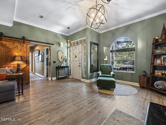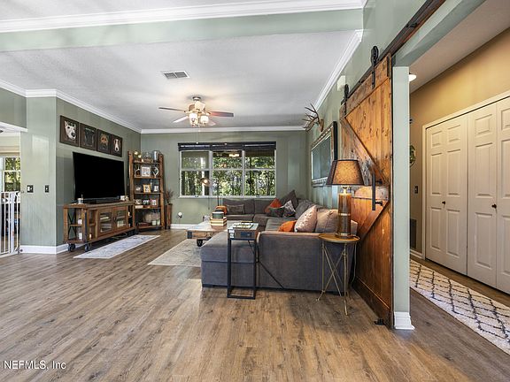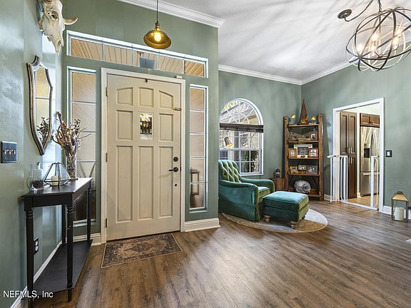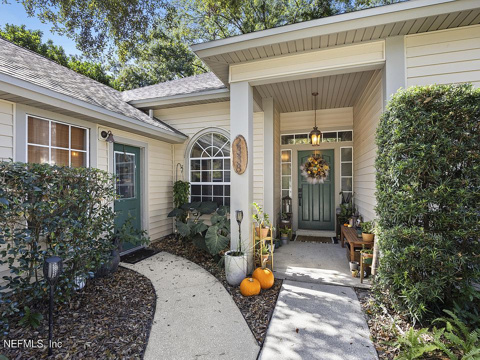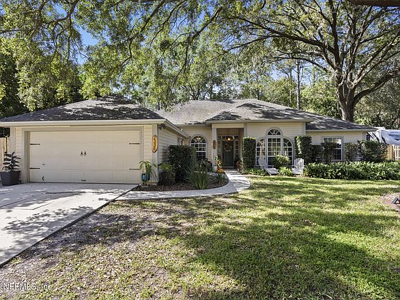 This warm and inviting split-floor plan home is on a very private lot in the ideally-located neighborhood of Indian Springs. The sprawling oak tree welcomes you to a house that feels like home. This 4/2.5 floor plan strikes the perfect balance of being open and inviting but having defined spaces. Recent updates include: new LVP flooring throughout, electric fireplace, beautiful solid surface countertops, stainless appliances, recessed and pendant lighting, updated master bathroom with large shower and custom closet organizers. Just off the large screened-in patio is the park-like backyard with new turf and pavers, firepit, cafe-style side yard, mature trees and shrubs, and backs up to a preserved natural buffer. The shade, privacy, and low maintenance enables year-round use of the beautiful outdoor spaces. The 2-car garage has been partially enclosed for an additional office or flex space with 1/2 bath. The front of the garage and garage door have been retained to allow for easy access to storage. The family-friendly neighborhood has a community pool and tennis courts, is only 5 miles from the beach, 10 miles from Everbank Stadium, and close to St. Johns Town Center and Neptune Beach Town Center.