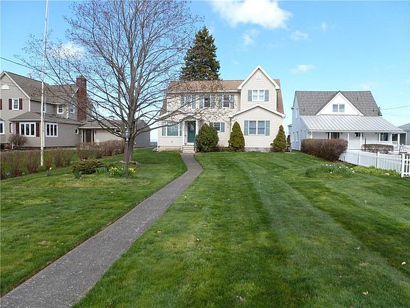 Come see this move in ready Waterfront home in prime location with over $50k+ in recent upgrades. Situated on Lake Ontario with land that runs all the way to Long Pond, which gives you amazing views of both the sunrise & sunset. Great floor plan with open huge living room, separate family room (could be a bedrm),1st floor bedrm,laundry,remodeled full bath & eat-in country kitchen with pantry. Right outside both living areas is your composite deck overlooking private fully fenced yard,60 ft of water frontage on Lake Ontario with massive break wall & watercraft hoist. Tons of value with over 2,600 sqft,5 beds,3 full baths & 2 car detached garage,fits a boat. Details included upgraded electric (17') /new garage doors/electric (11'),newly remodeled bathrms,custom irrigation system (13'),H20 tank (19'),newer roof,vinyl siding,over-sized sliding glass doors offering great lake views,custom closets & whirlpool tub.