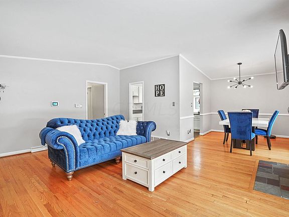 Upper Arlington ranch with open floorplan and hardwood floors throughout. The Great Room boasts a vaulted ceiling, wood burning fireplace, and a wall of windows overlooking the large, fenced back yard and patio. 3 bedrooms, 1 1/2 baths, wood burning fireplace and finished lower level with new wood laminate flooring and built in shelving perfect for entertaining.
