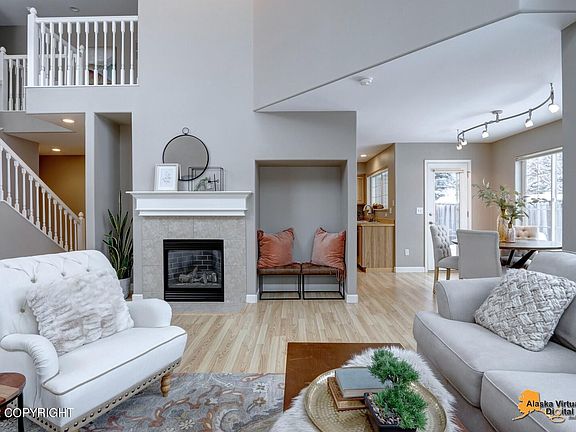 Two stories of sun-soaked windows and Chugach views! This modern, move-in ready, townhouse style condo boasts vaulted ceilings, sunny and open living spaces, large kitchen with SS appliances and bar, huge master suite, private fenced yard, expanded TREX deck, well managed HOA and so much more! Conveniently located in the heart of Southport, close to trails, parks, shopping and schools.